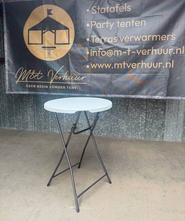 Deze statafel, compleet met doek, biedt een stevige en stijlvolle ondergrond voor het neerleggen van alles wat je nodig hebt, van hapjes en drankjes tot andere items. Perfect voor elke gelegenheid.